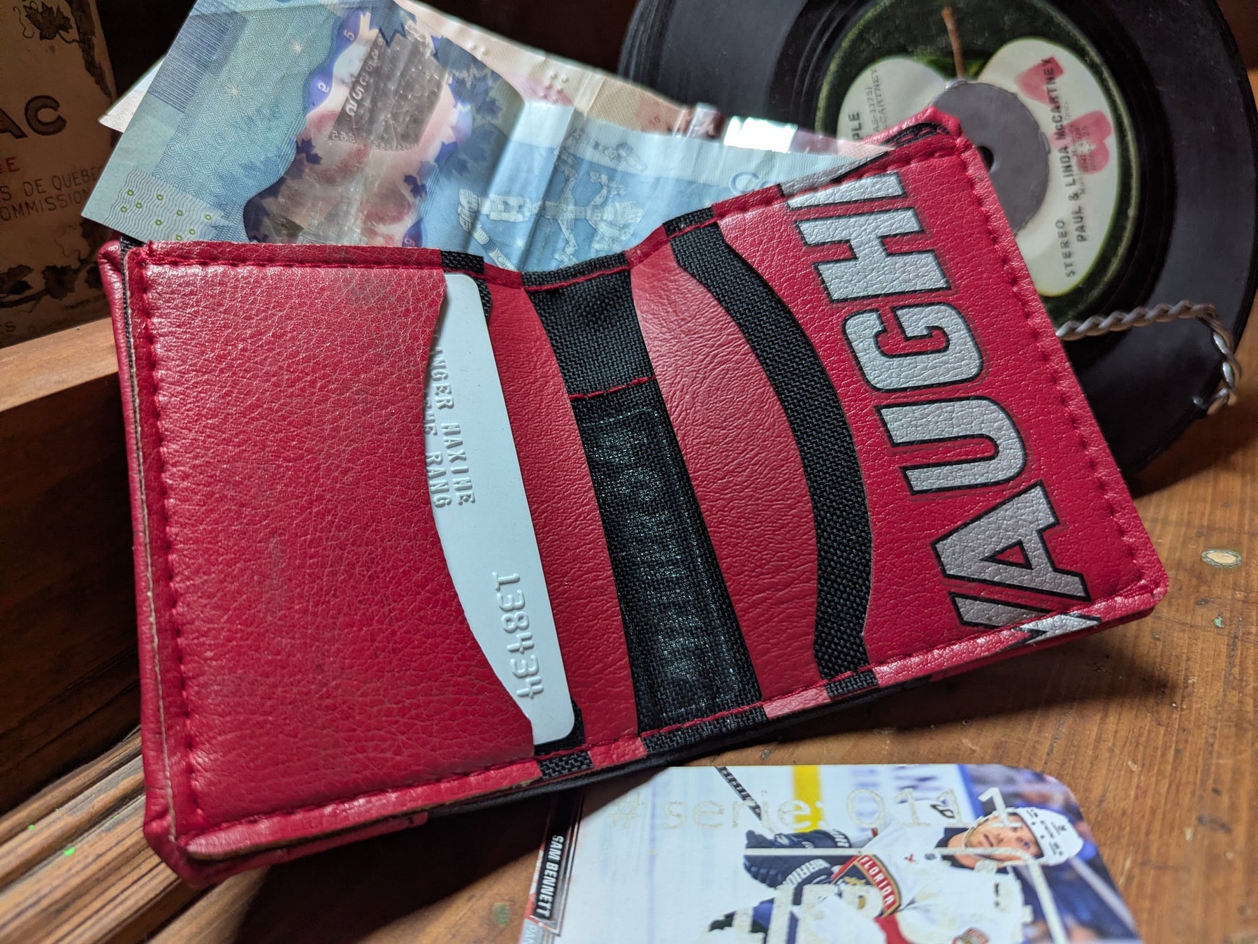 Chaque portefeuille est une pièce faite à la main au Québec, dans notre atelier, à partir de pads de goalers ayant véritablement servi sur la glace. Les traces du jeu y sont parfois visibles, et c’est ce qui fait tout son charme.