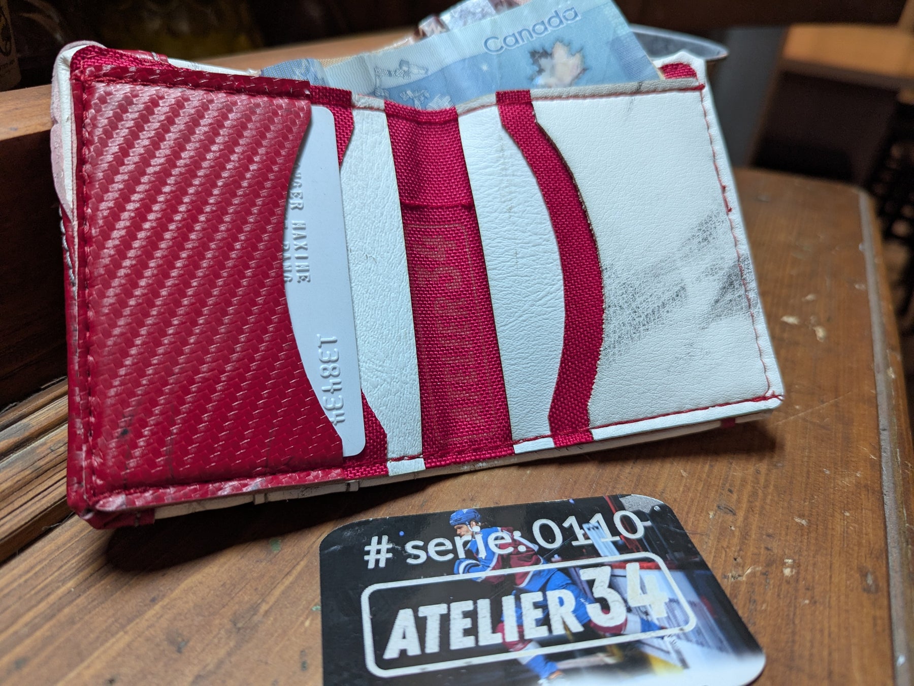 Chaque portefeuille est une pièce faite à la main au Québec, dans notre atelier, à partir de pads de goalers ayant véritablement servi sur la glace. Les traces du jeu y sont parfois visibles, et c’est ce qui fait tout son charme.