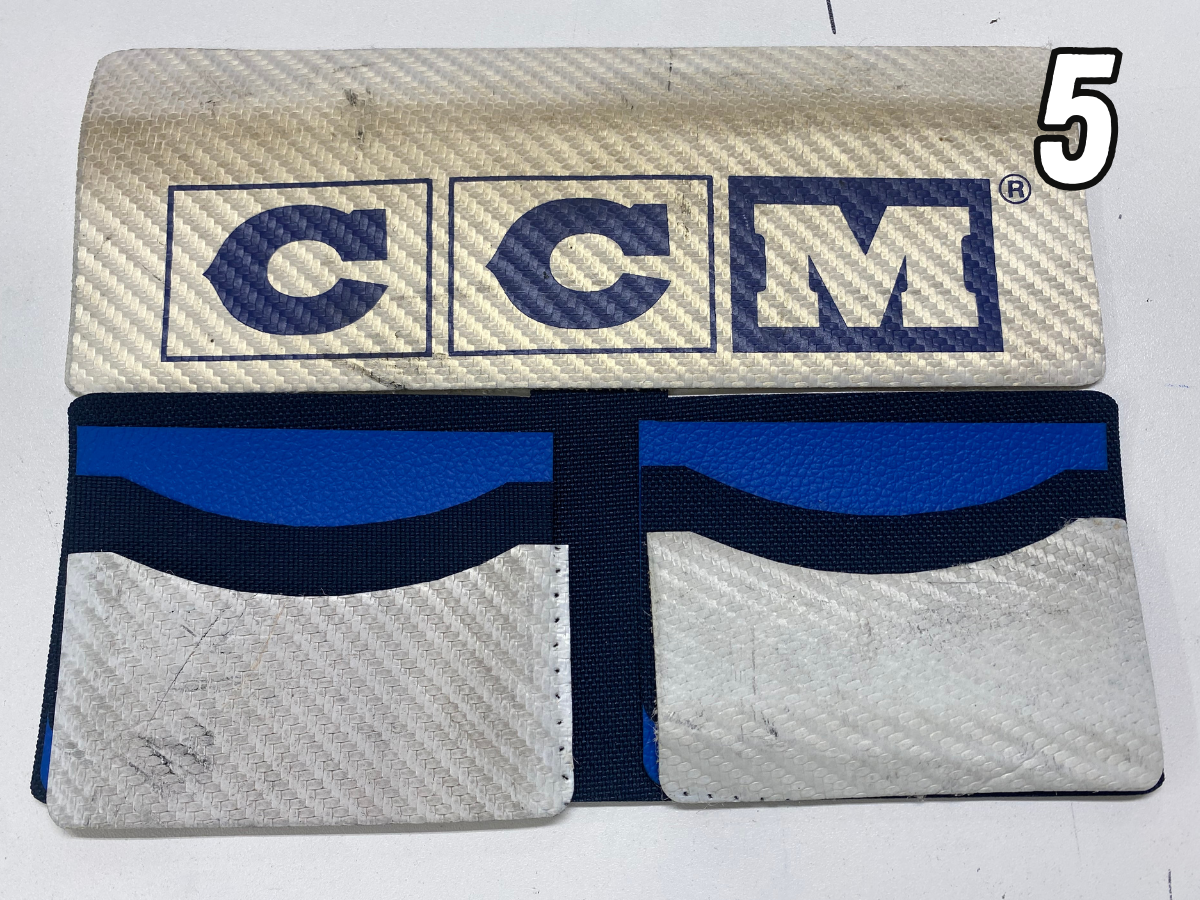 Parcoure notre sélection de portefeuilles et sélectionne celui qui te correspond le mieux. Une fois ton choix fait, nous le mettons en production spécialement pour toi. Chaque pièce est unique, fabriquée à partir de jambières de gardien recyclées, pour un style authentique et écoresponsable.