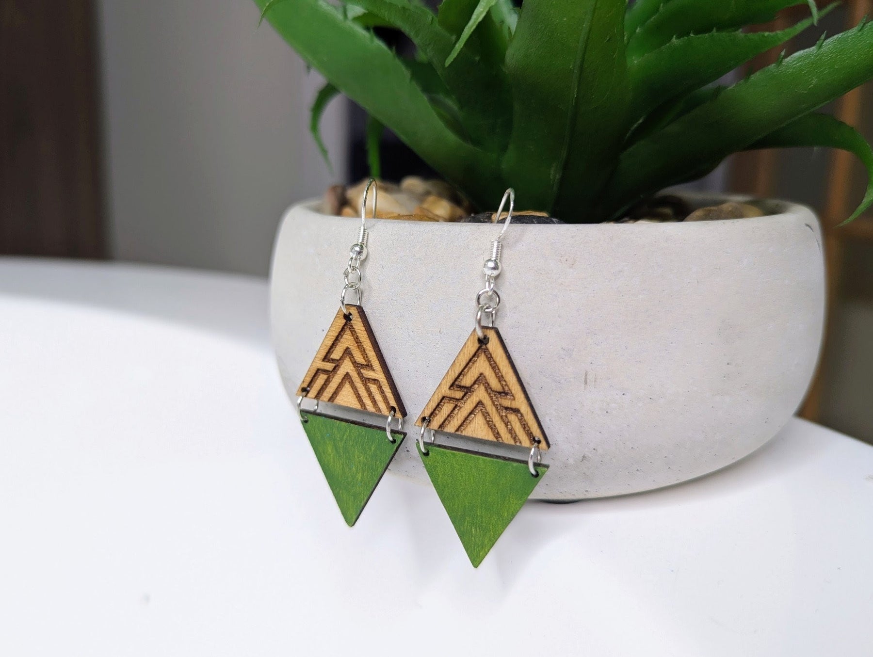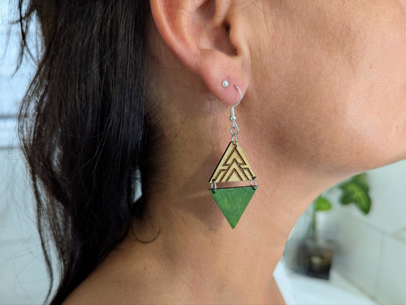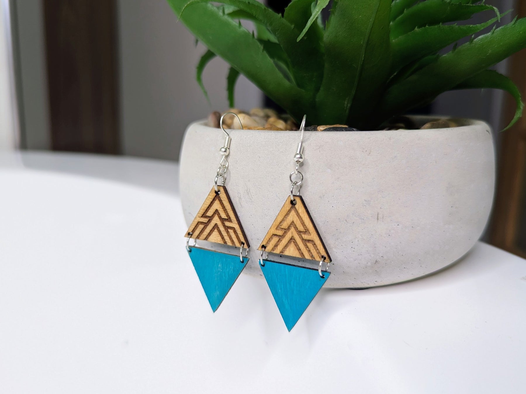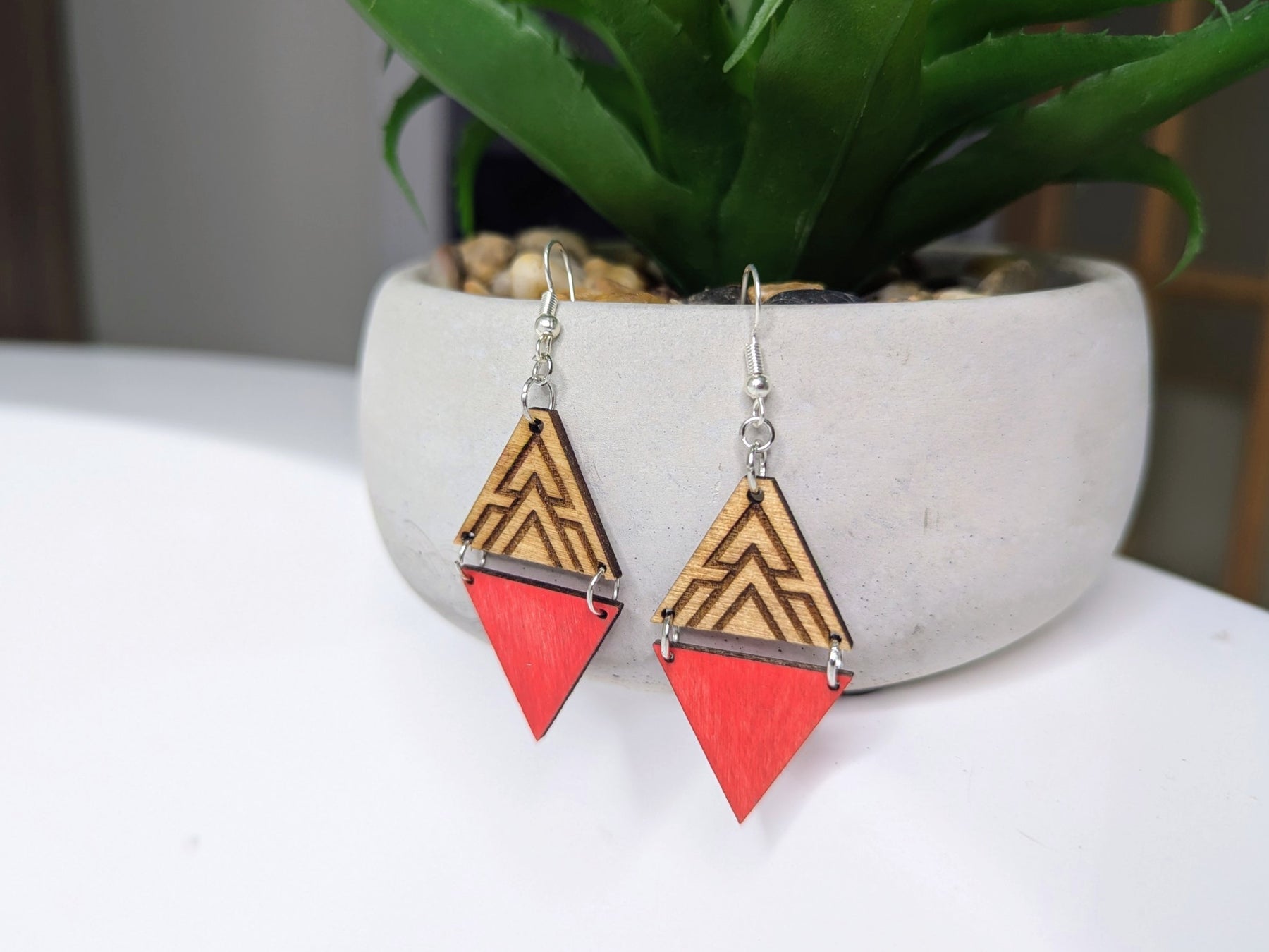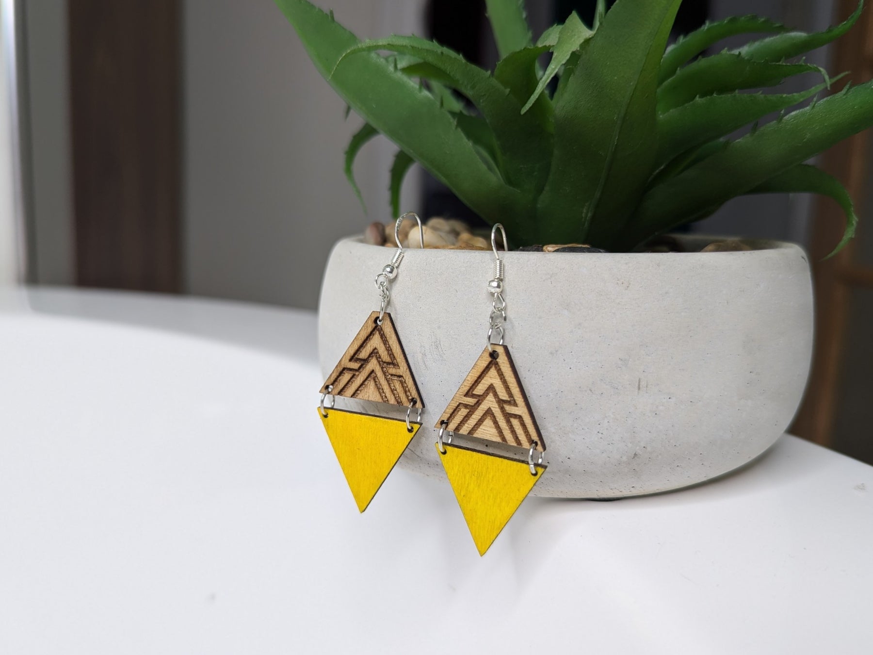 Créé et gravé avec soin à partir de bois, ce bijou au design exclusif est imaginé dans mon atelier, de A à Z. Chaque pièce marie la chaleur naturelle du bois à la brillance discrète du métal nickel, pour un contraste élégant et original. Certaines pièces sont peintes d’une couleur vive, ce qui ajoute de la personnalité à votre look!