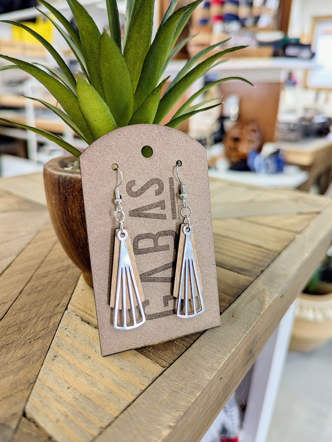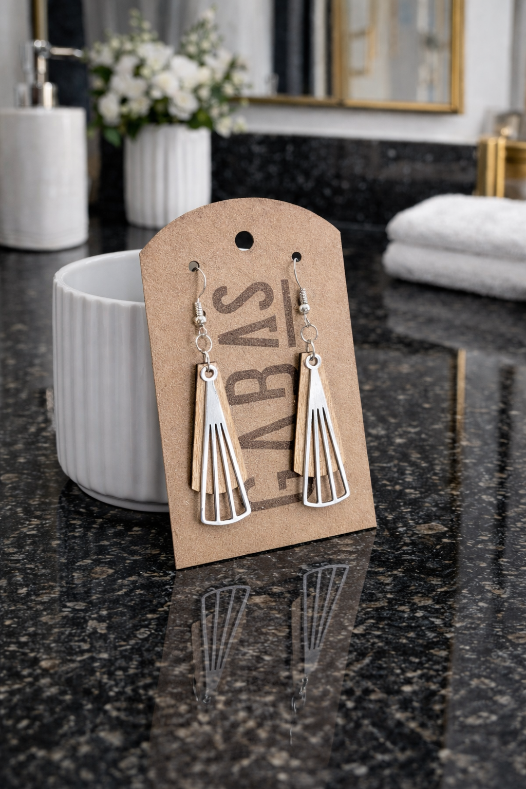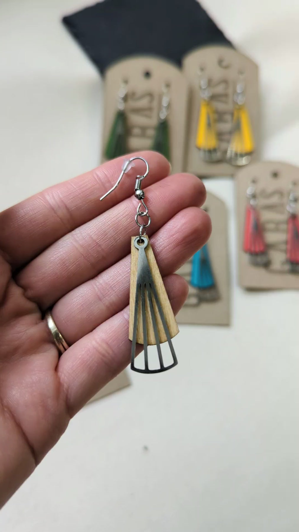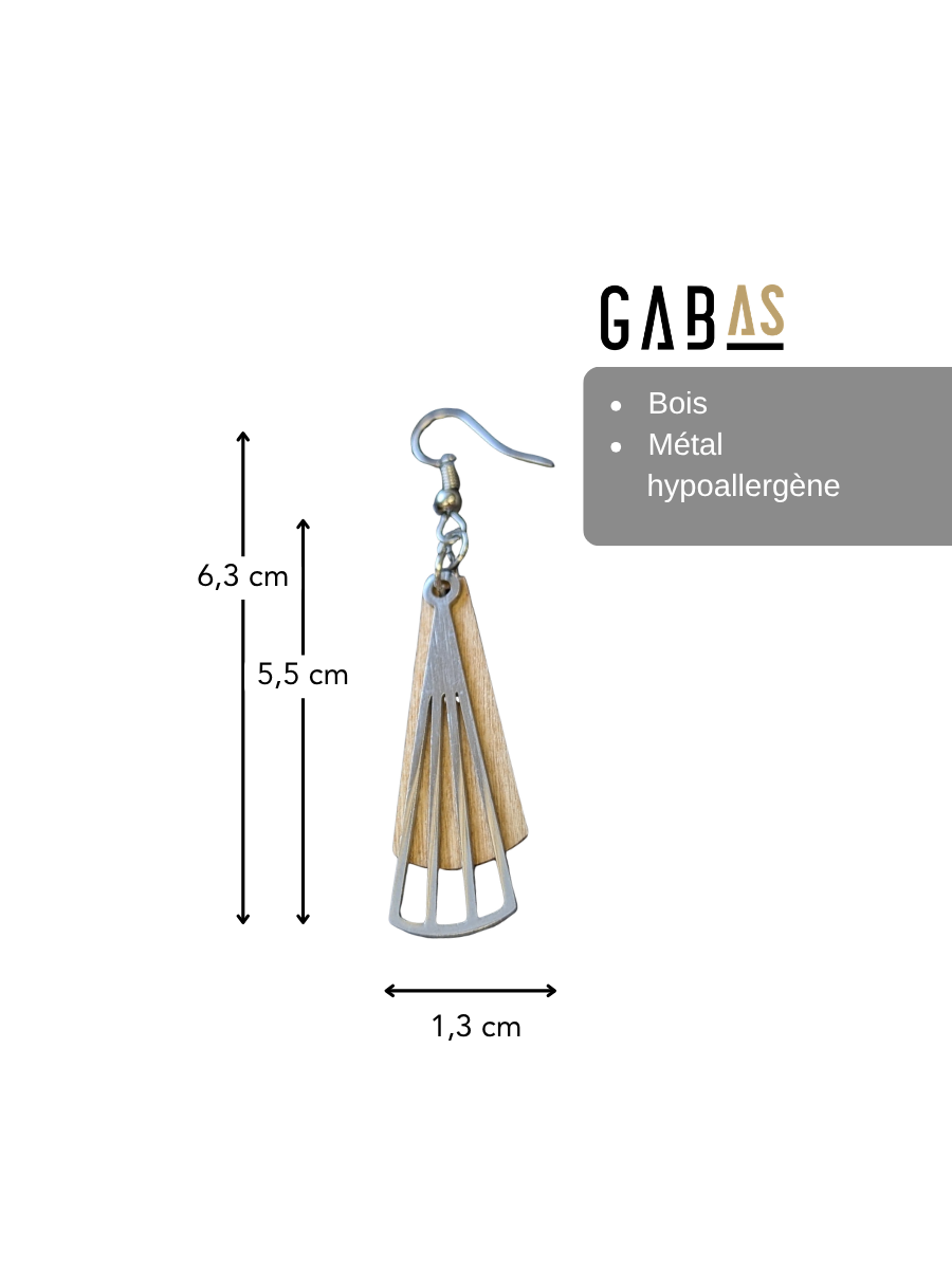 Créé et gravé avec soin à partir de bois, ce bijou au design exclusif est imaginé dans mon atelier, de A à Z. Chaque pièce marie la chaleur naturelle du bois à la brillance discrète du métal nickel, pour un contraste élégant et original. Certaines pièces sont peintes d’une couleur vive, ce qui ajoute de la personnalité à votre look!