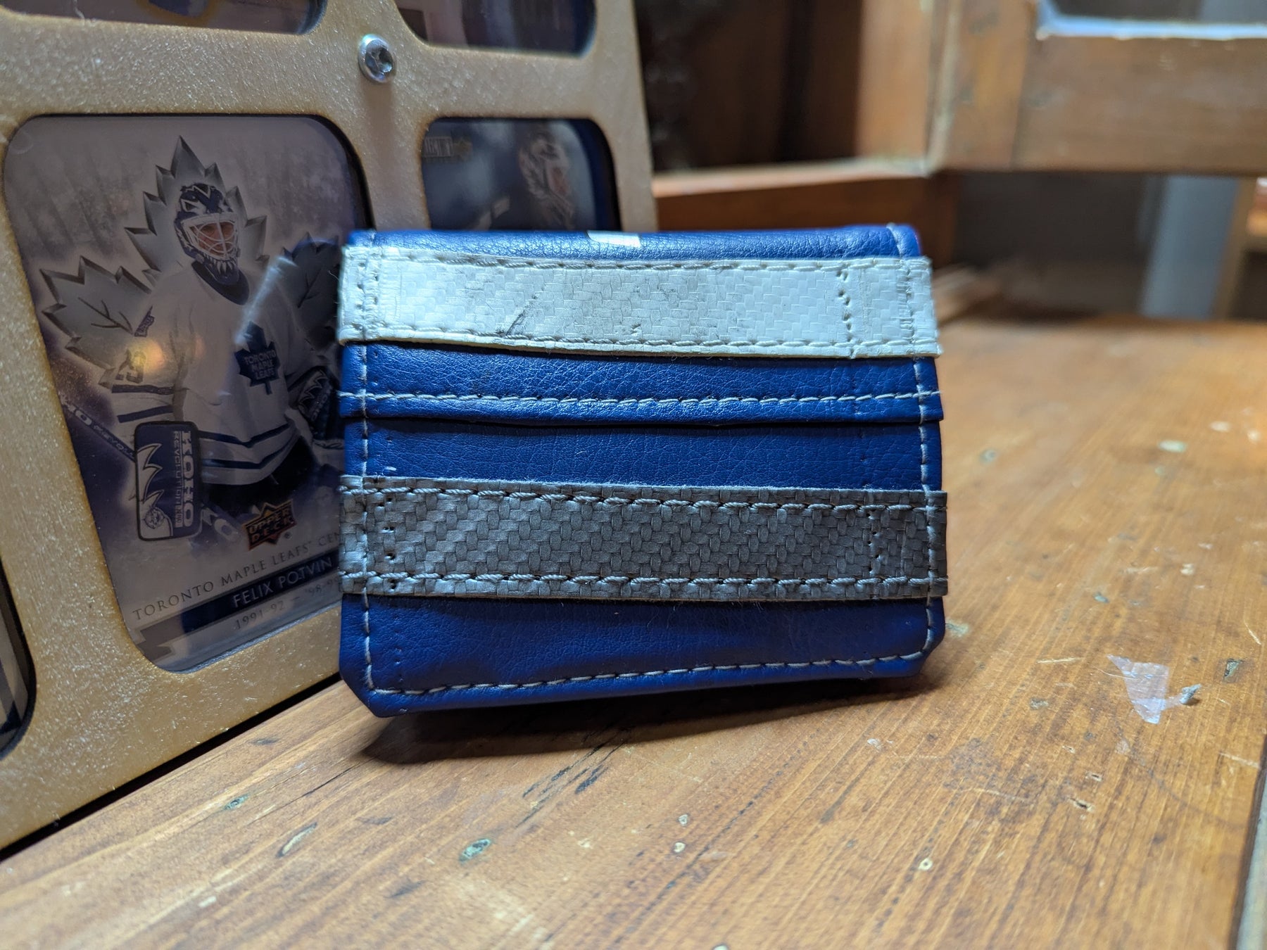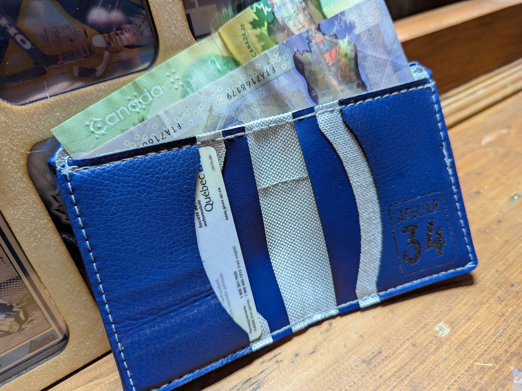 Chaque portefeuille est une pièce faite à la main au Québec, dans notre atelier, à partir de pads de goalers ayant véritablement servi sur la glace. Les traces du jeu y sont parfois visibles, et c’est ce qui fait tout son charme.