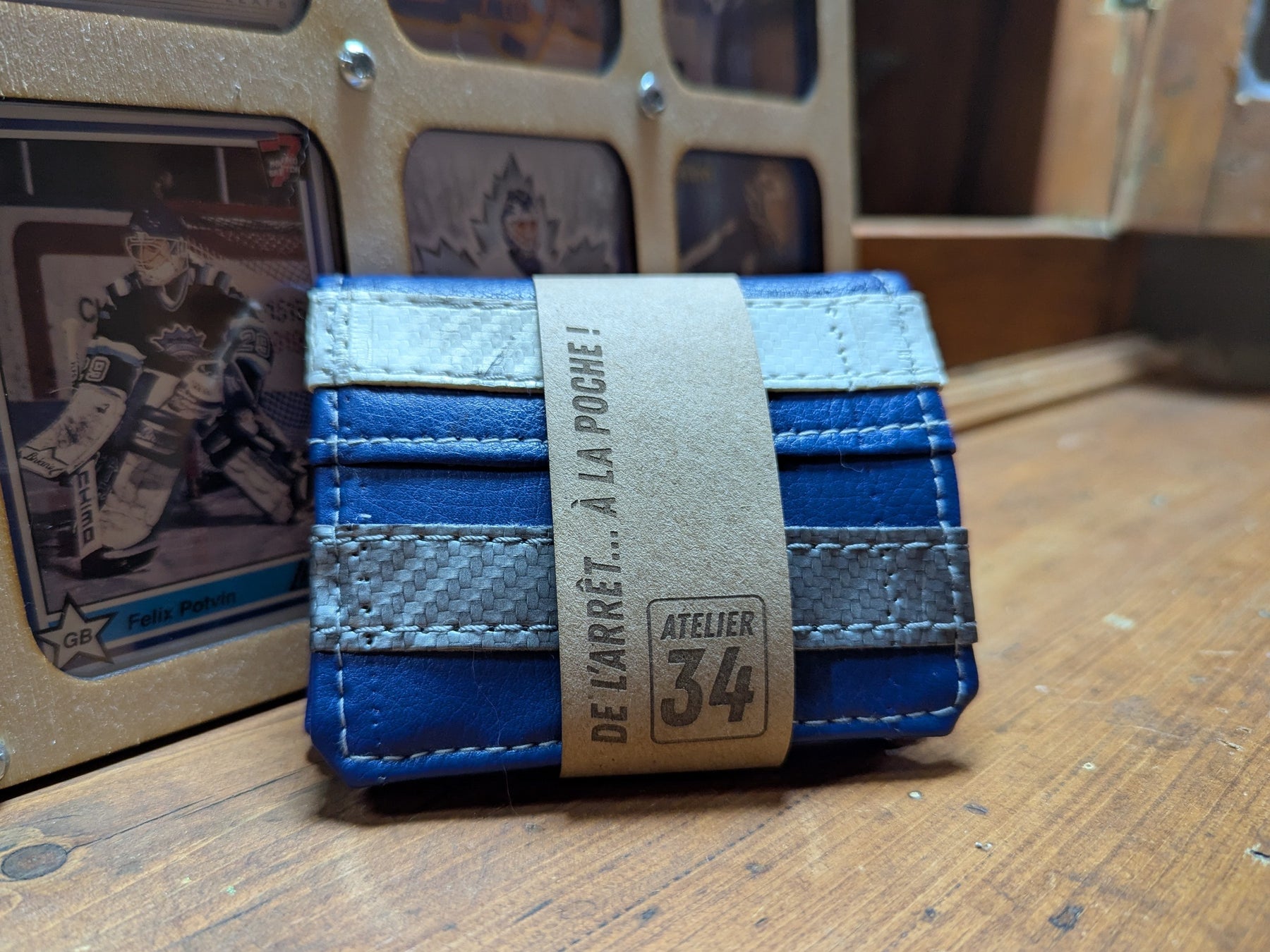 Fabriqué à partir d’équipement de hockey recyclé, ce portefeuille unique en son genre incarne parfaitement l’esprit d'ATELIER 34 : donner une nouvelle vie à des matériaux marqués par l’action.
